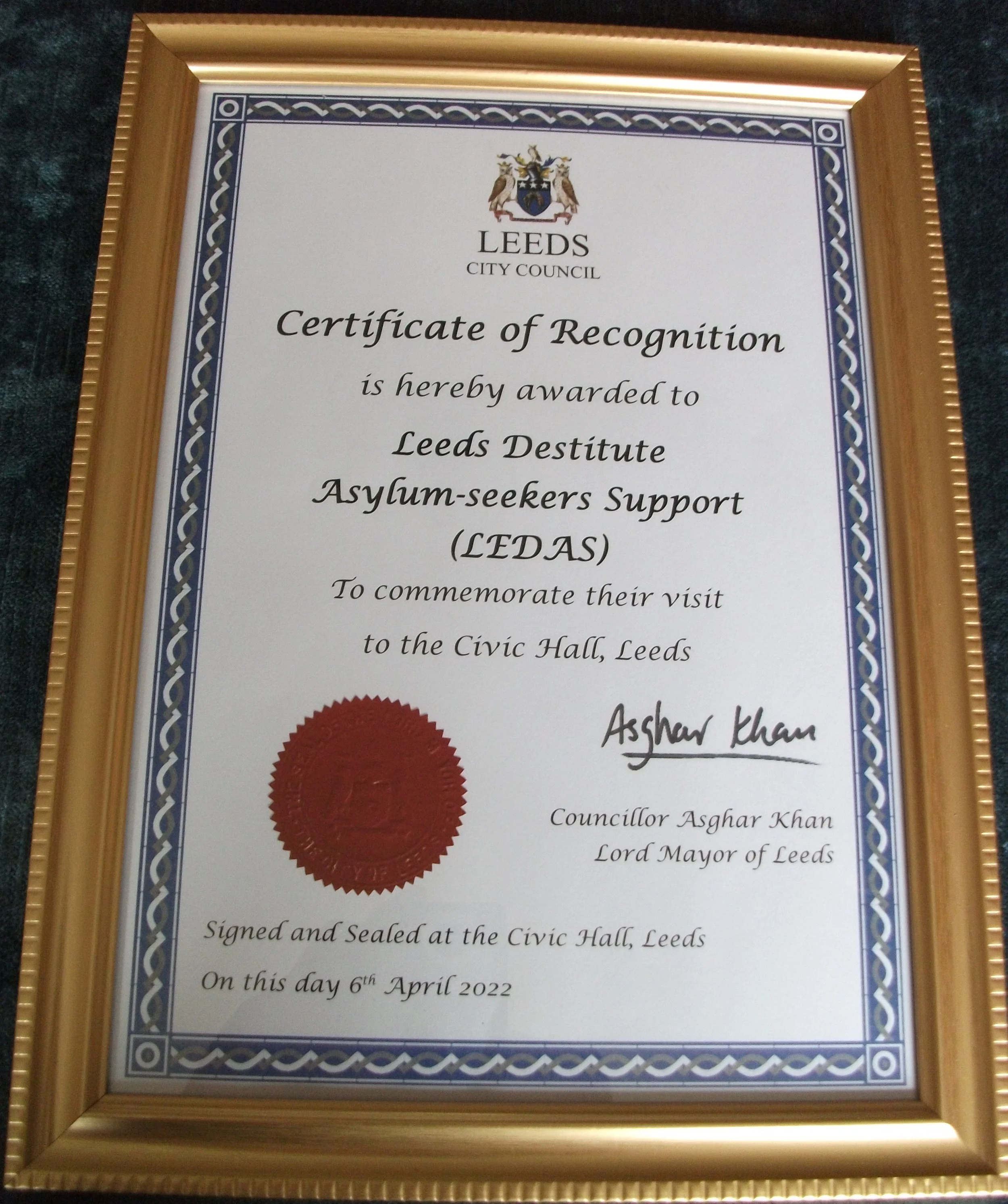 We are members of NACCOM and Leeds Migration Partnership and have been endorsed by organisations in Leeds providing support for destitute asylum seekers.